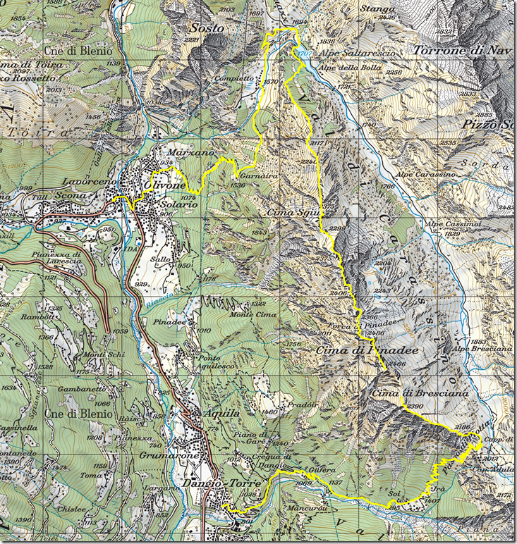 Yeah, “Going South” was the key to success this weekend. The weather forecast for the north was kind of undecided with rain and other obstacles, so south was the direction. As I don’t have a good hiking guide for Ticcino it was rather difficult to pick something adequate. The “Via Alta della Verzasca” was ruled out as even just doing part of it would have meant to take a day of on Monday. Not acceptable! Eventually we agreed on the “Via Alta della Val Carassino” which is a newly established hiking trail. And the beginning of the ridge looked perfectly suitable for overnight camping.