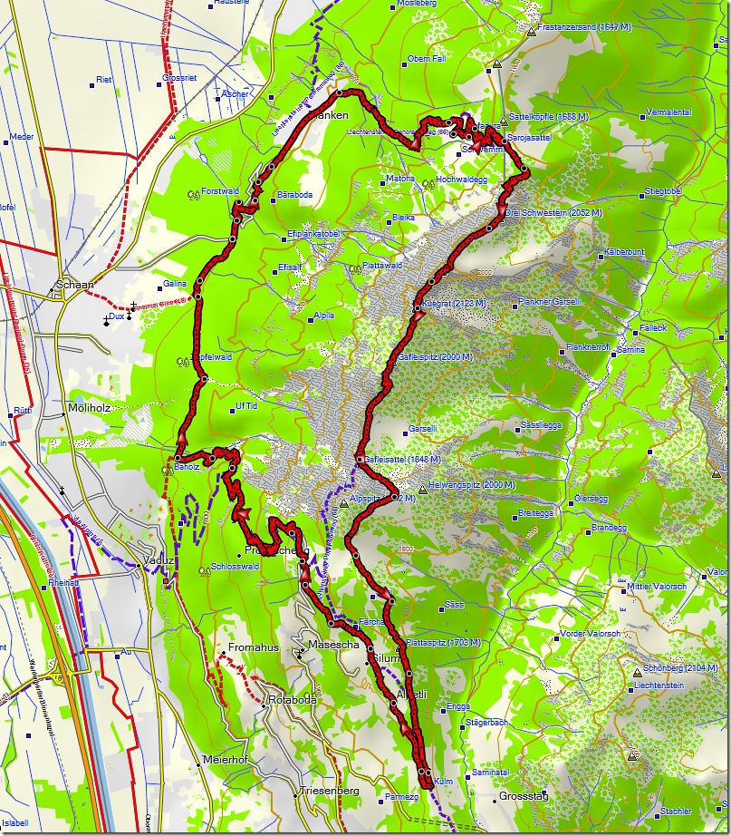 Für die Wanderung habe ich mir die Drei Schwestern in Lichtenstein ausgesucht. Auf dem Papier waren es 1500 Höhenmeter und etwa 7 Stunden Dauer. Mhhhmm, wie sich Papier doch täuschen kann …