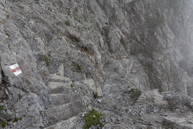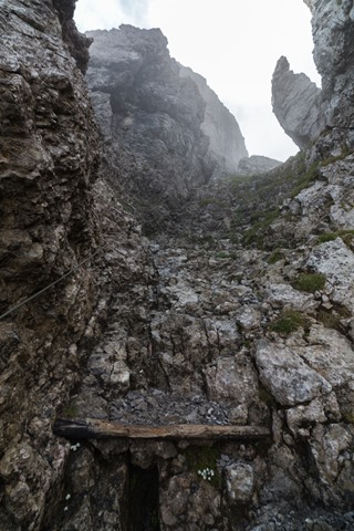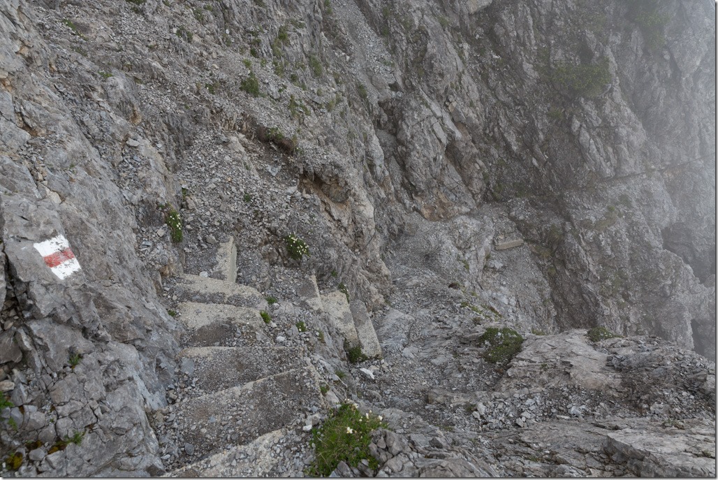 Hiermit endet der einfache Teil der Wanderung. Unten am Weg war zwar auf einer Tafel von “Schwindelfreiheit und Trittsicherheit” die Rede. Es tönte aber mehr als die übliche Abwehr von Turnschuhwanderern. Der Weg wurde deutlich steiler und es gab vermehrt Seile zum Festhalten.